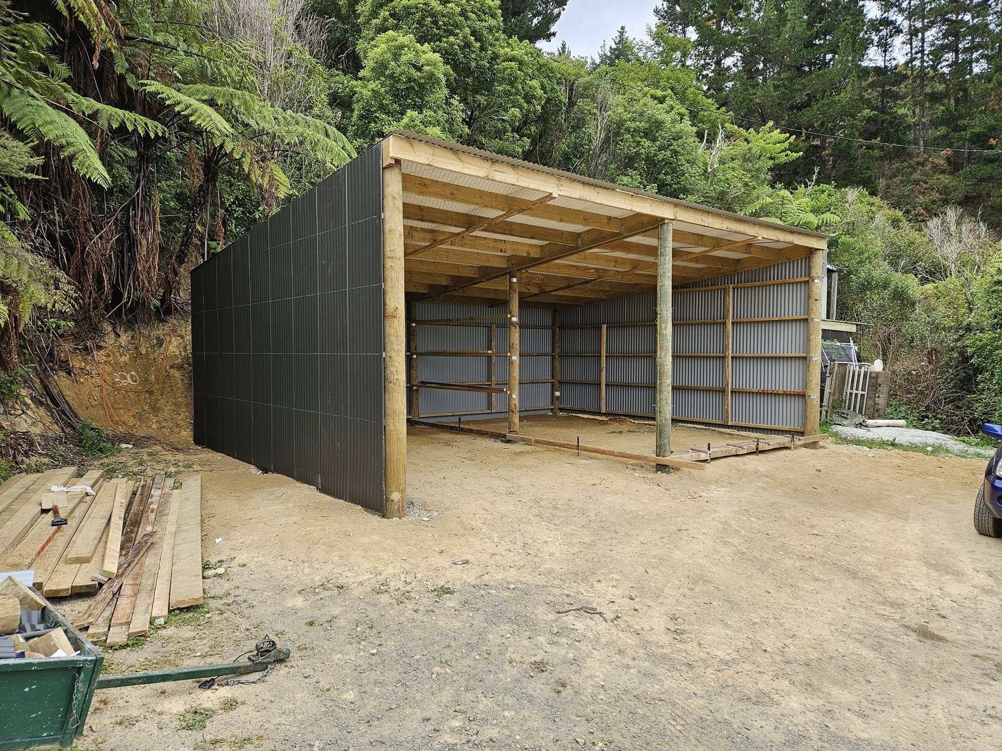 This client wanted a large garage with an open bay which could store his concrete truck, as well as a closed in area for his motorcycles, quad bikes, toys etc.